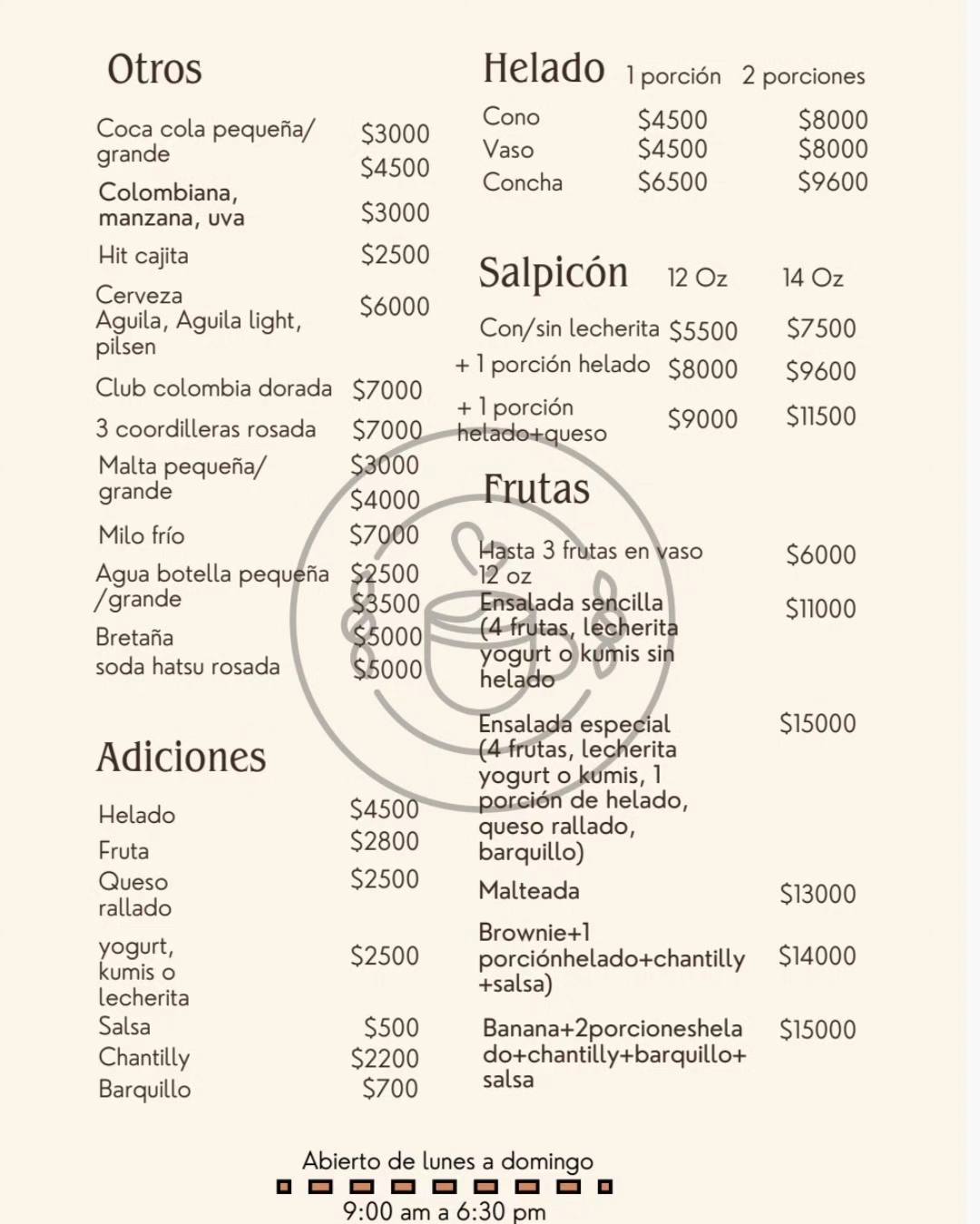 🕘 Horario: Abrimos todos los días de lunes a domingo, de 9:00 a.m. a 6:30 p.m.
